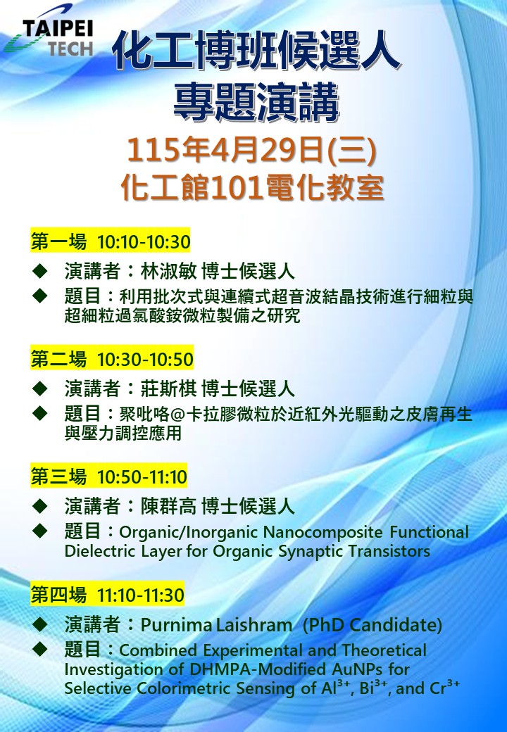 題目:聚吡咯@卡拉膠微粒於近紅外光驅動之皮膚再生與壓力調控應用